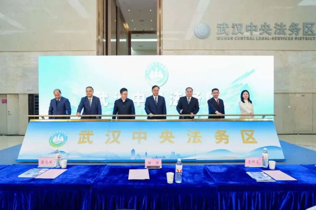 揭牌仪式中,杨军与武汉市委常委、市委政法委书记张忠军等领导共同为武汉中央法务区揭牌。活动当天,武汉市司法局、武汉仲裁委办、江汉区政府签订共建协议,江汉区政府与省内知名法学院校、核心法律服务机构签订战略合作及入驻协议,《海外建设工程项目法律风险防范与争端解决指南》、全场景预付式消费公证服务平台“储信安”两大法治创新产品正式发布,江汉区人民法院金融审判庭同步揭牌。