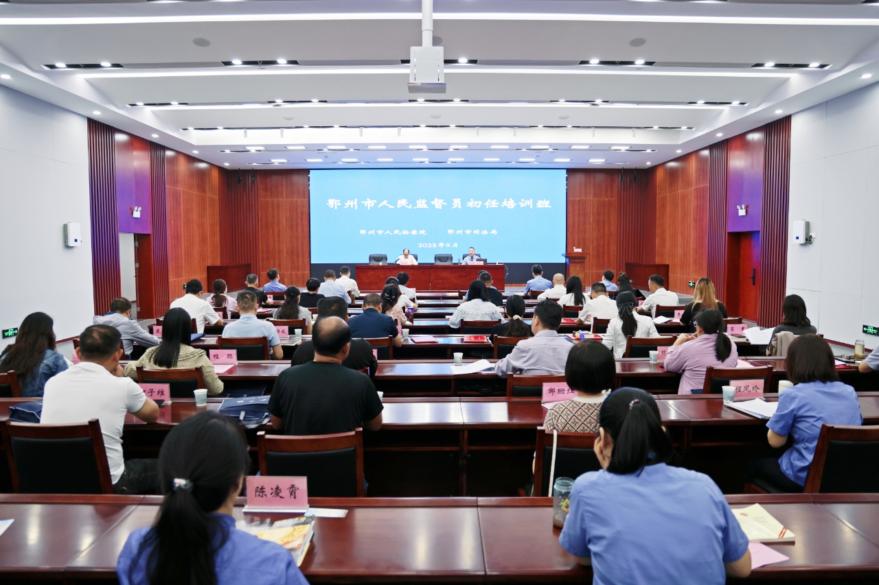 9月23日,鄂州市检察院联合鄂州市司法局举办2025至2030年度市级人民监督员颁证仪式暨初任培训班,市司法局副局长杨方主持,市检察院副检察长汪元金作专题授课。