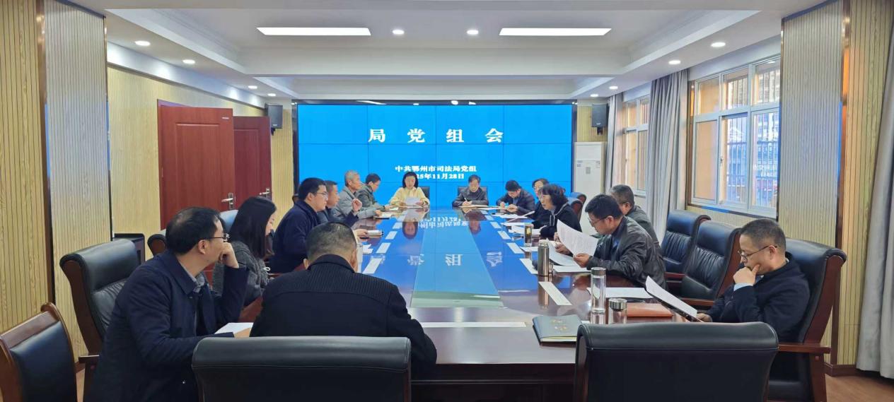 11月28日,鄂州市司法局召开党组(扩大)会议,传达学习习近平总书记对全面依法治国工作作出的重要指示和中央全面依法治国工作会议精神,结合省委常委会、市委常委会相关会议精神,研究贯彻落实举措。