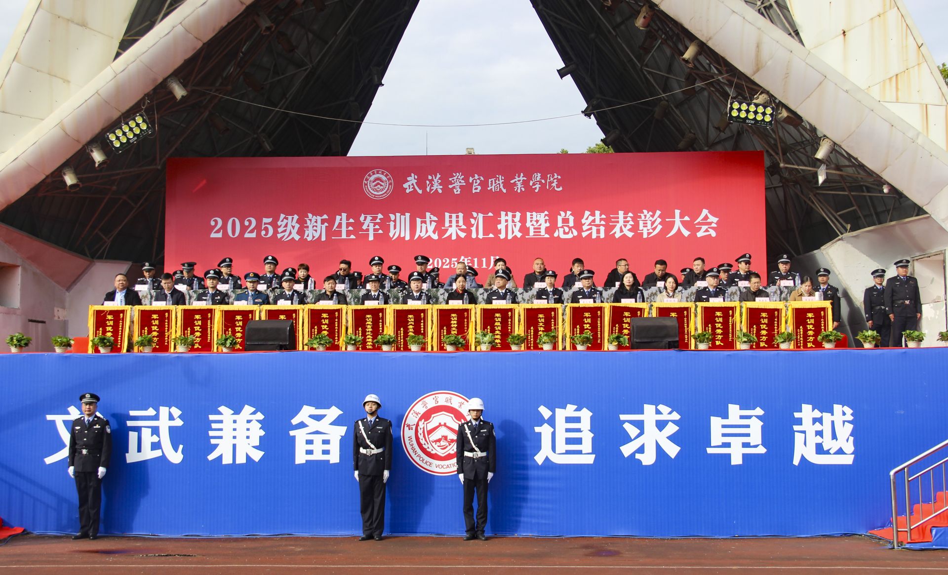 挺膺担当赴新程 武汉警官职业学院2025级新生军训成果汇报暨总结表彰大会举行