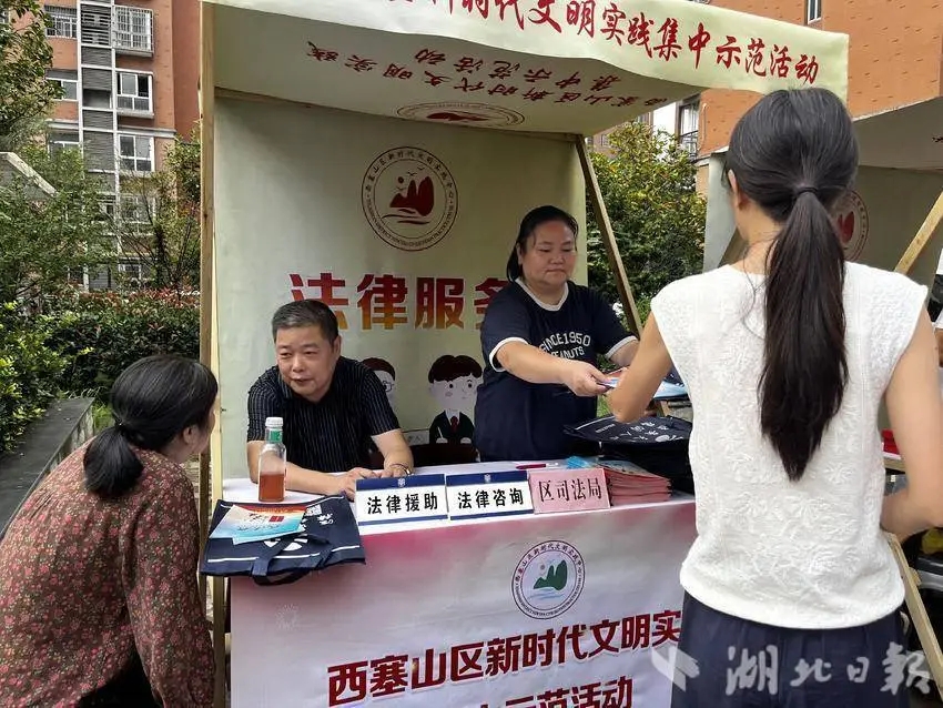 西塞山区司法局组织法律服务团队现场“摆摊设点”,工作人员和法律工作者现场为村民提供“零距离”法律咨询服务,解答相关法律援助知识及土地流转、老年人权益保障、民间借贷等法律问题,并发放《中华人民共和国民法典》《法律援助指南》等各类法治宣传资料300余份,确保法律知识“人手一本,带回家学”。