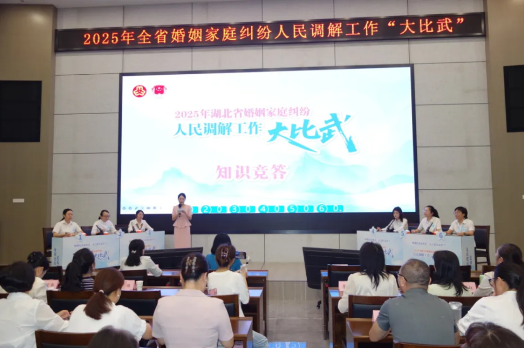 本次活动由省妇联、省司法厅联合举办,是2025年湖北省“婚调比武展风采,支点建设显担当”婚姻家庭纠纷人民调解工作“大练兵”活动重要一环,旨在通过以赛促学、以学促干,引领基层婚姻家庭纠纷人民调解工作高质量发展,更好地服务妇女儿童、服务家庭、服务社会治理。