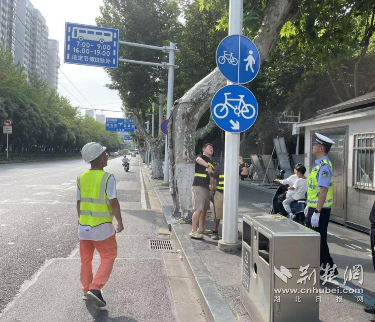 六大队民警对武昌区武珞路首义路周边标志设置进行检查