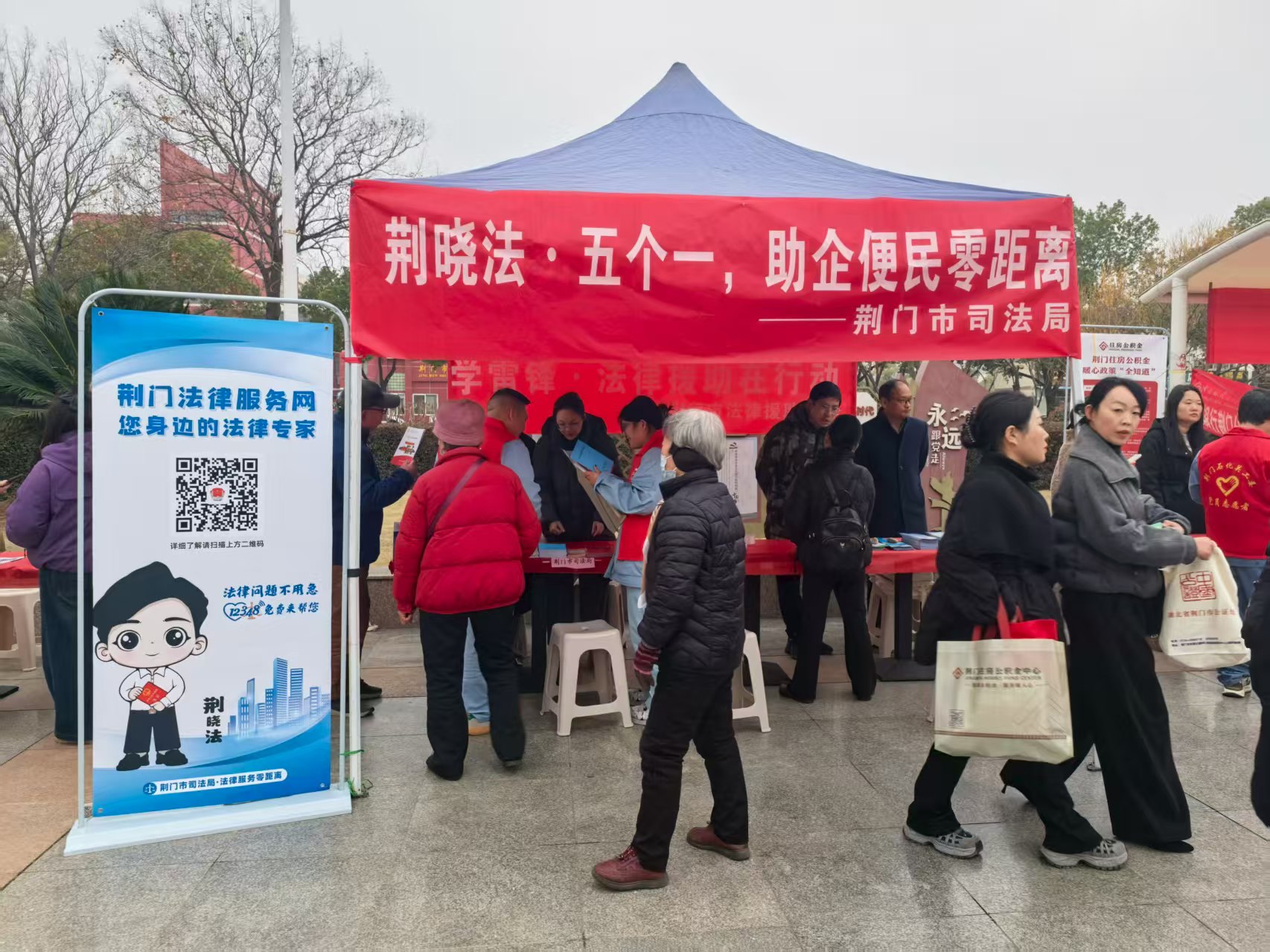 为弘扬雷锋精神,践行司法为民宗旨,3月5日上午,荆门市司法局在荆门石化广场开展“荆晓法·五个一”进石化厂区学雷锋公共法律服务专项行动,将专业法律服务送到群众和企业“家门口”,精准回应基层法治需求,以法治力量助力优化法治化营商环境。