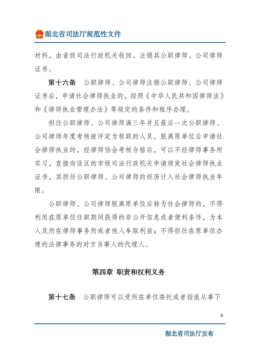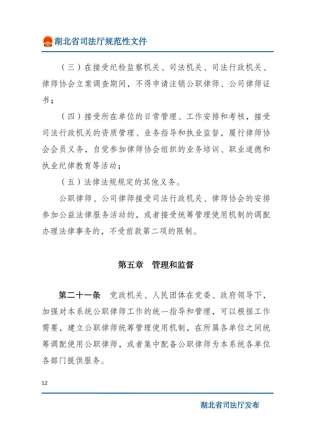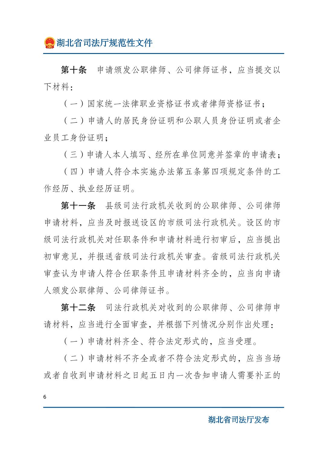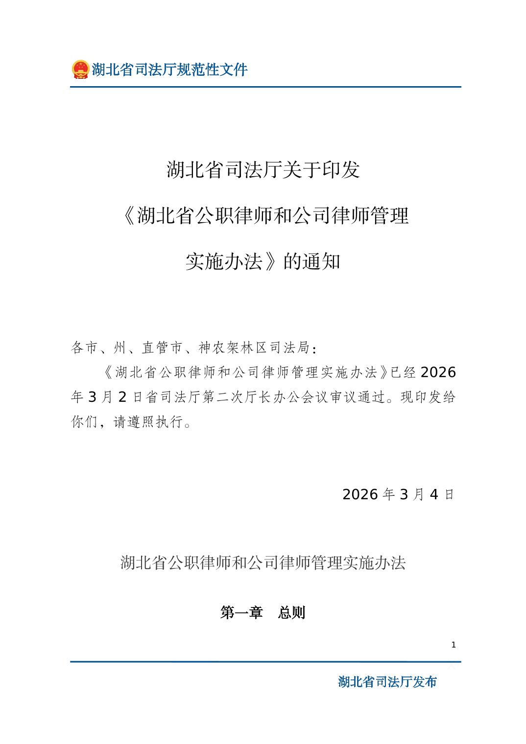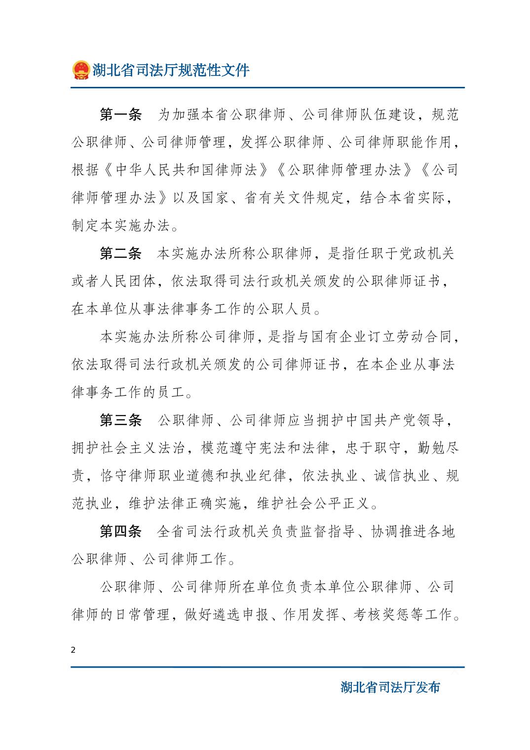 湖北省司法厅关于印发《湖北省公职律师和公司律师管理实施办法》的通知