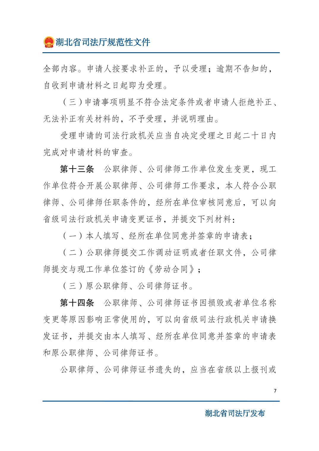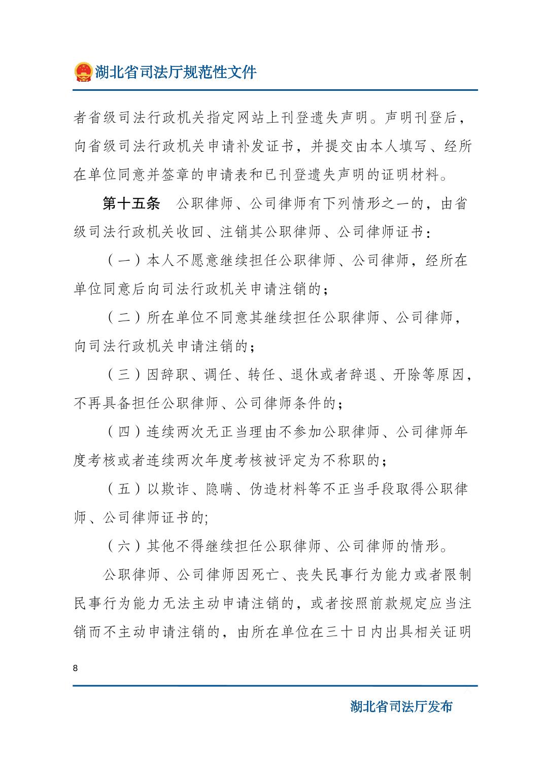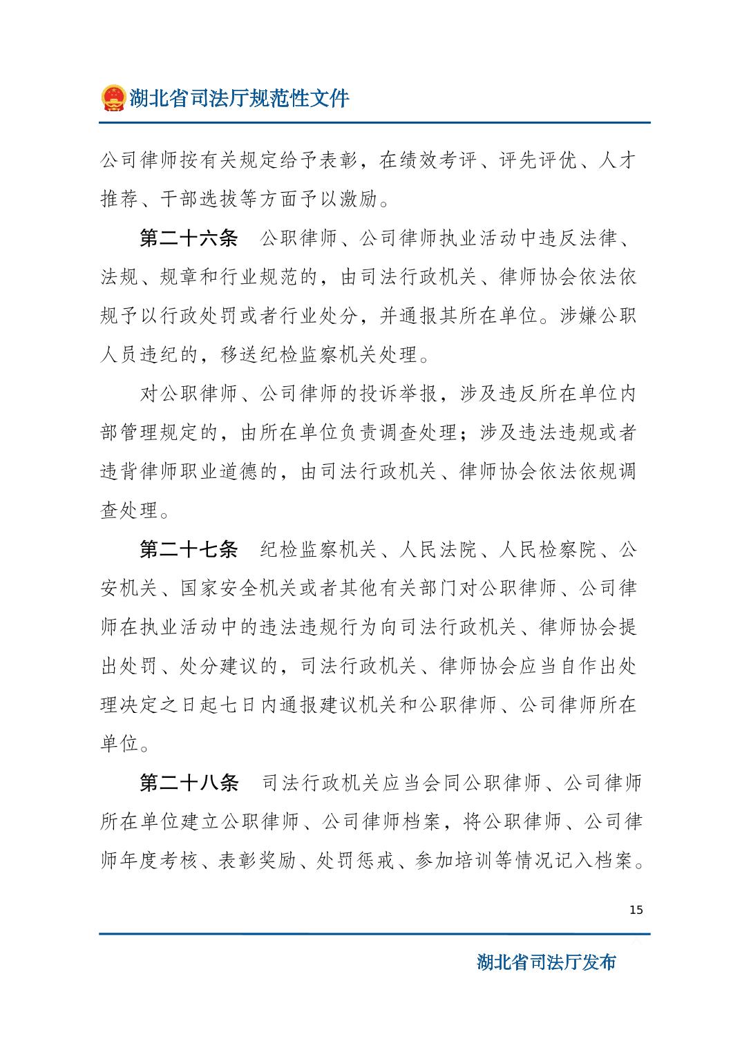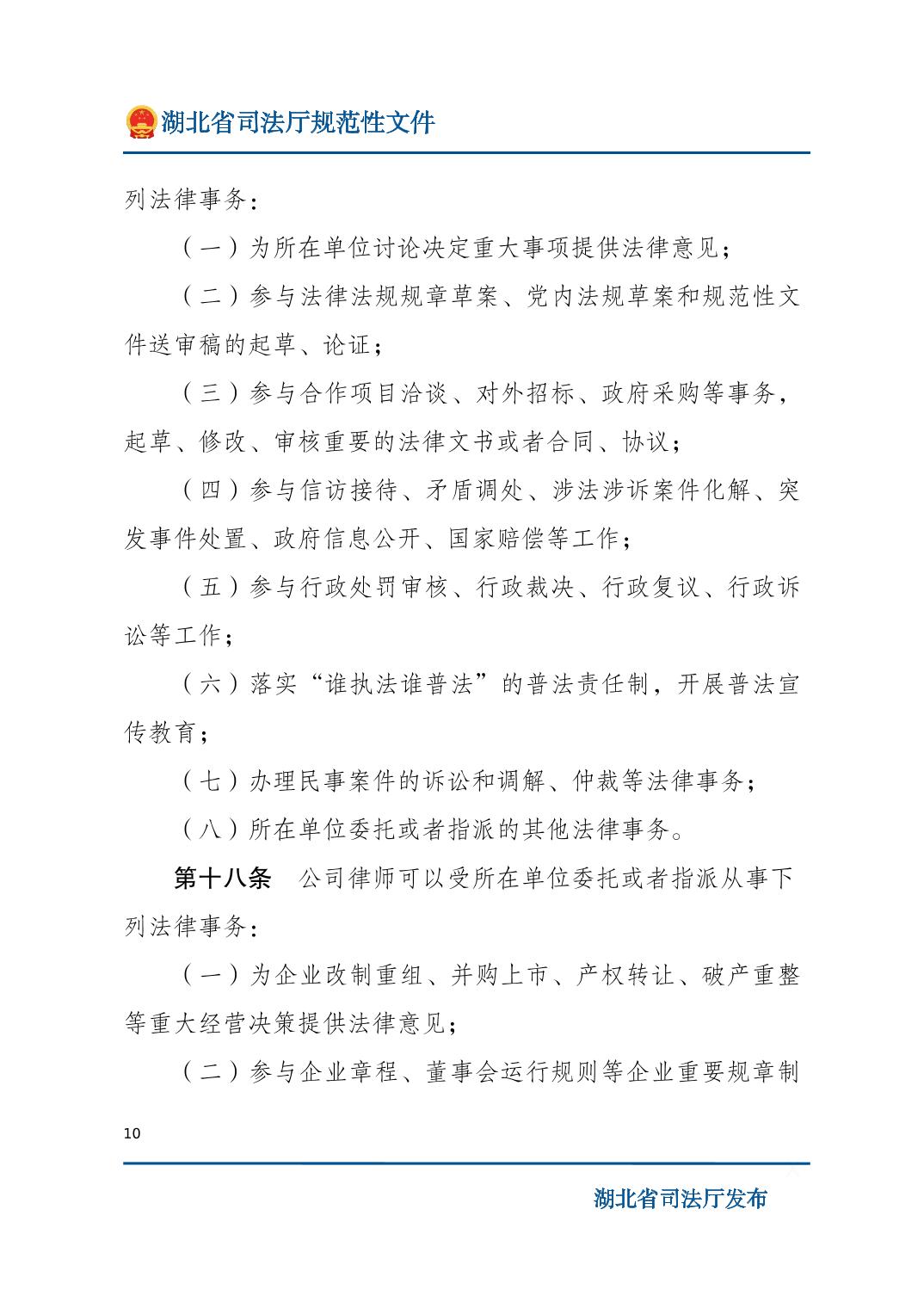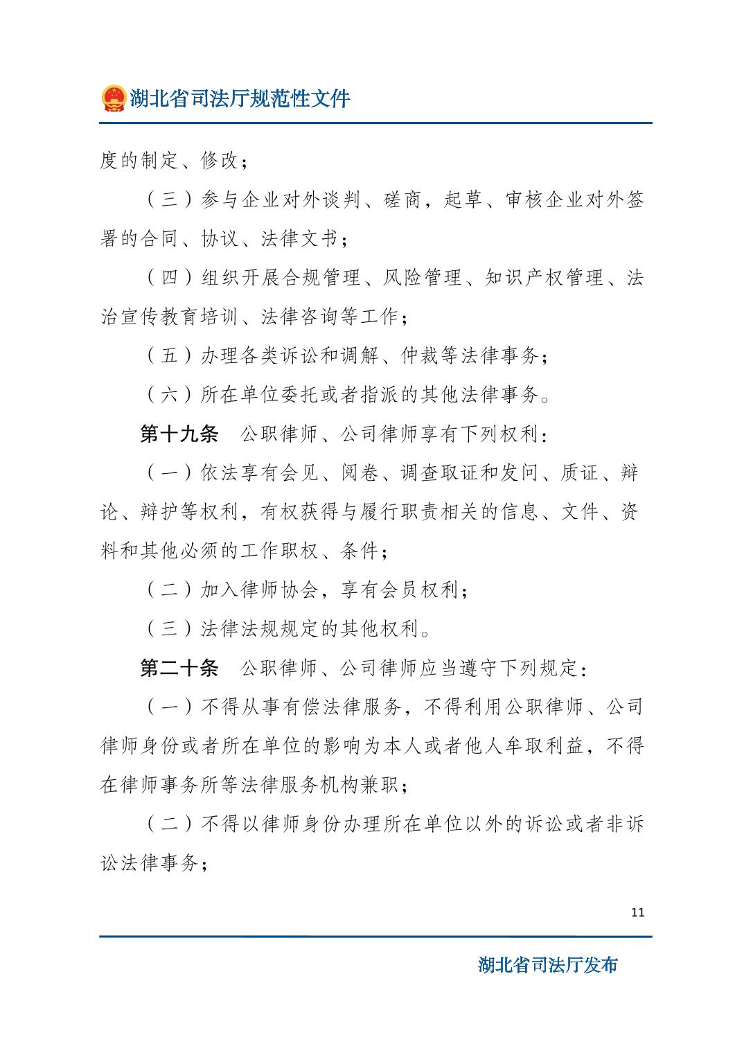 湖北省司法厅关于印发《湖北省公职律师和公司律师管理实施办法》的通知
