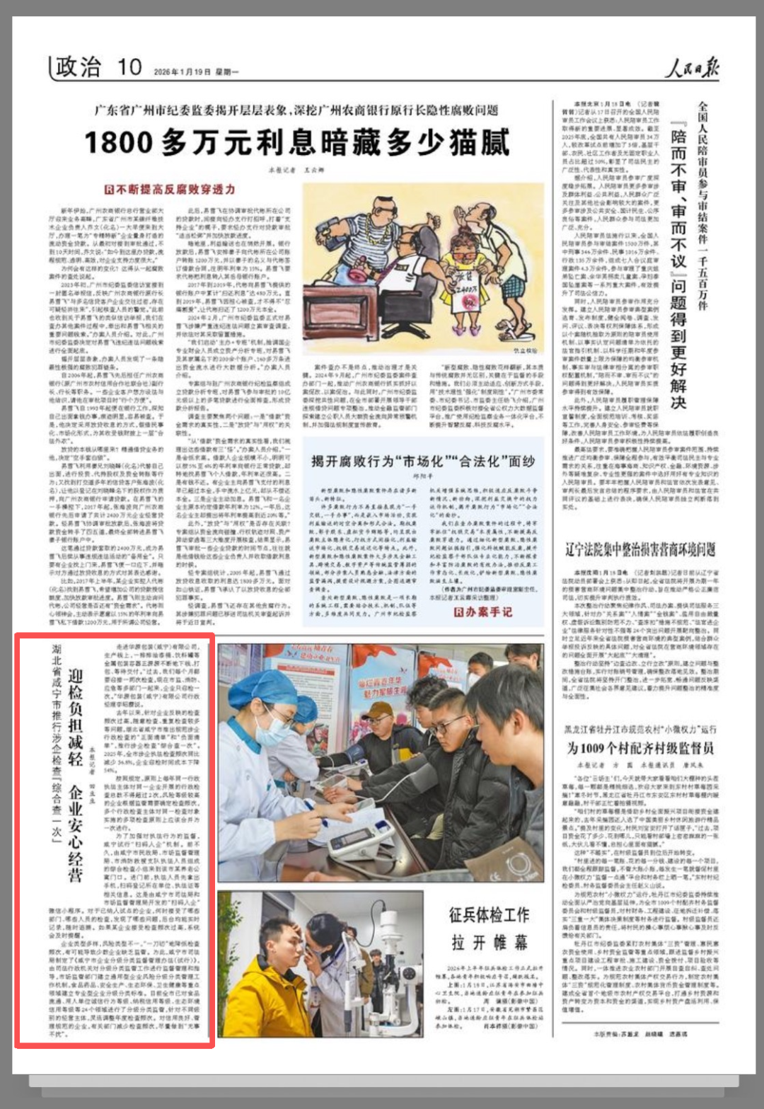 1月19日,《人民日报》刊发报道《湖北省咸宁市推行涉企检查“综合查一次” 迎检负担减轻 企业安心经营》,介绍了咸宁市推出规范涉企行政检查的“正面清单”和“负面清单”,推行涉企检查“综合查一次”的经验做法。全文如下。