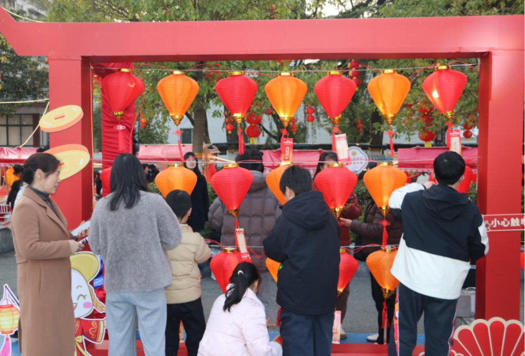 一排排红灯笼下悬挂着谜面卡片,灯谜被赋予了浓浓的“法味”。80余条法治灯谜将枯燥的法律知识与灯谜趣味性相结合,涵盖宪法、民法典、刑法、法律援助法等多个领域,吸引了众多社区居民驻足参与。普法工作人员穿梭在人群中,不仅为猜中谜底的居民送上法治小礼品,更及时结合谜底,用通俗易懂的语言讲解背后的法律知识点,解答群众关于婚姻家庭、邻里纠纷、财产继承等方面的法律咨询。