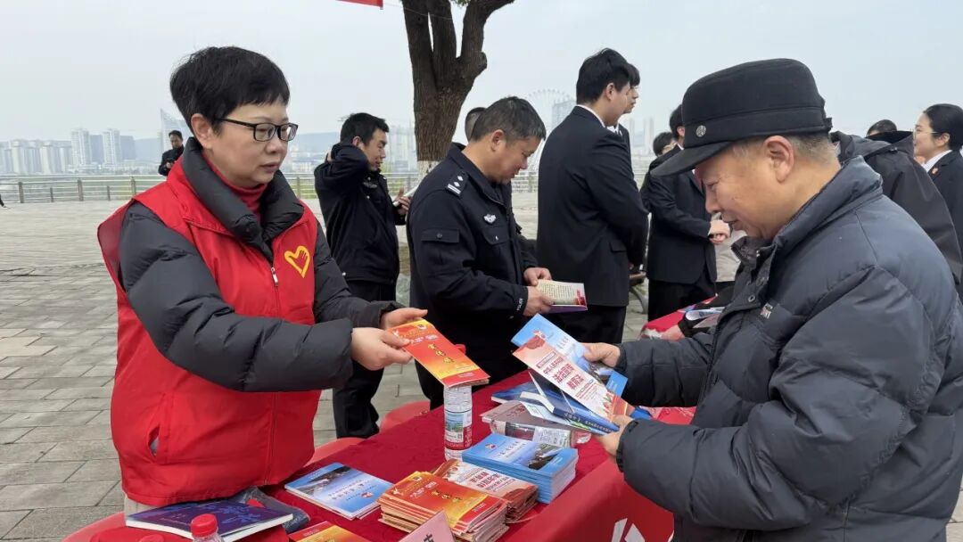 在竹山县桃花源街区女娲广场,竹山县委宣传部、竹山县水利和湖泊局等多部门联动,以法治为引领,通过丰富形式普及水法规知识,凝聚依法治水、全民护水的共识。