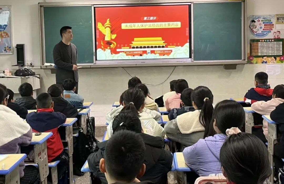 湖北思普润律师事务所联合鄂州市鄂城区凤凰街道菜园头社区,走进育才学校小学部,为同学们解读《中华人民共和国未成年人保护法》,用专业法律知识为未成年人健康成长保驾护航。