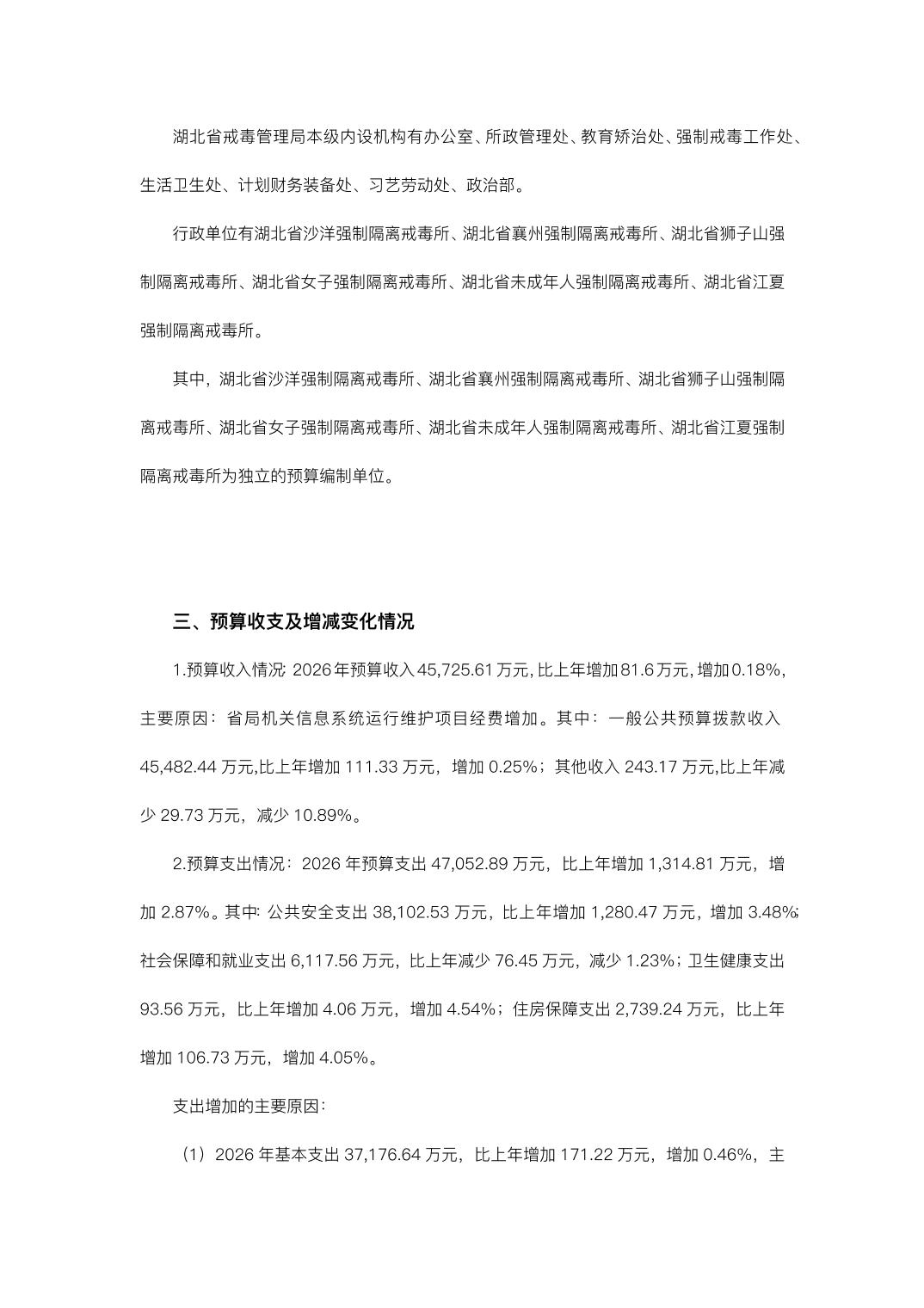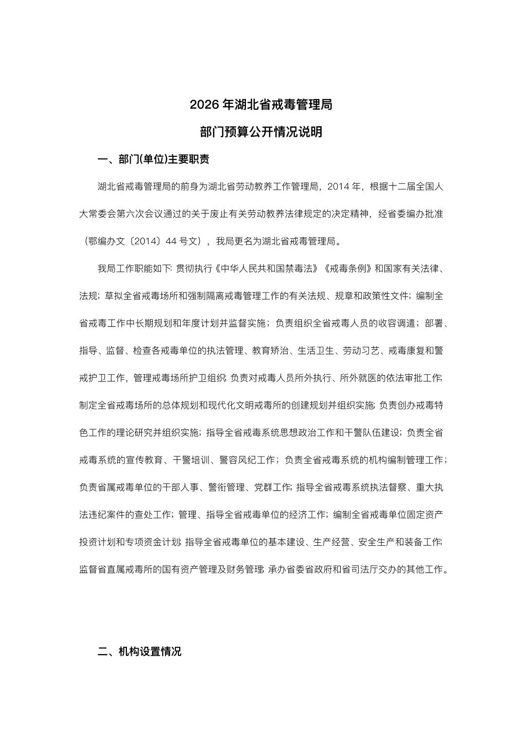湖北省戒毒管理局2026年度部门预算