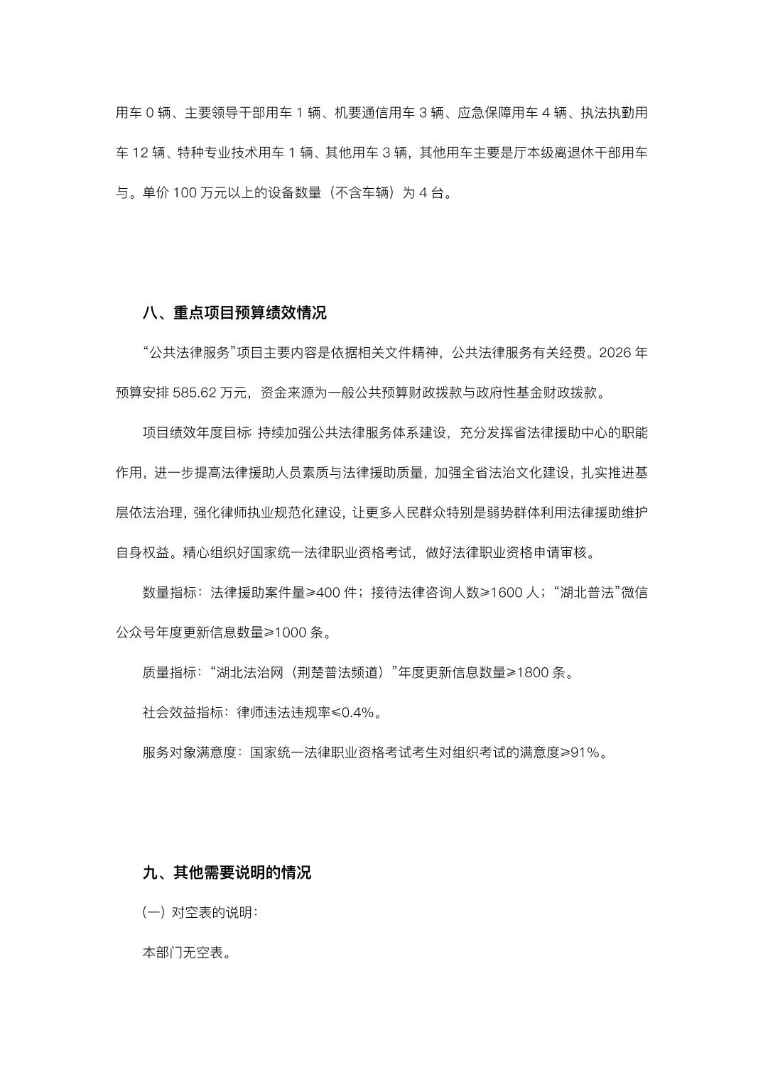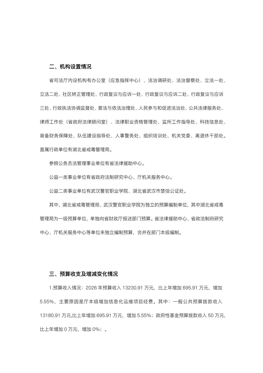 湖北省司法厅2026年度部门预算(厅本级)